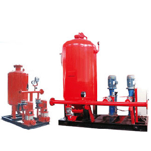 本設備由隔膜式氣壓罐、水泵、遠傳壓力表、閥門、管道及電控柜等組成。是消防給水系統理想的消防增壓穩壓設備,它能使消防管道系統始終保持不利點消火栓及自動噴水所需的壓力,而且能使壓氣罐始終貯有所要求壓力的消防水量,一旦發生火災,確保消火栓等消防設備可以立即投入撲救。